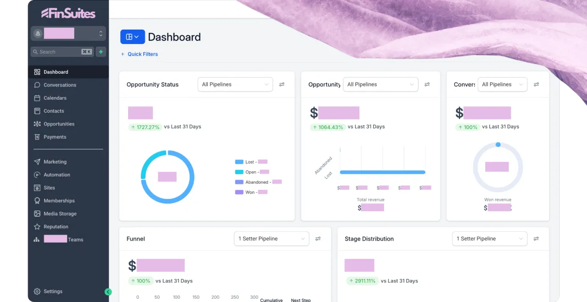 Launch your website, build high-converting funnels, and engage every visitor instantly with built-in webchat. FinSuites helps you attract, nurture, and convert leads on autopilot all from one simple dashboard.